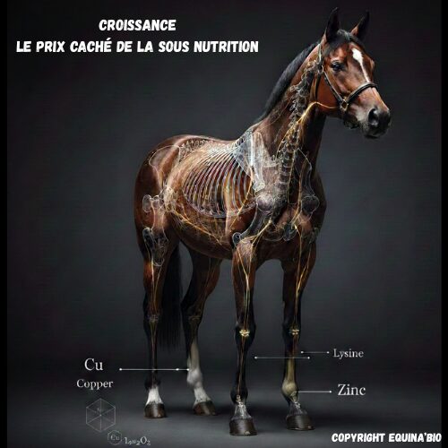 Sans un apport suffisant en lysine (dont le foin est structurellement pauvre), la synthèse des protéines musculaires et de la trame organique de l’os est bloquée. La lysine est indispensable pour soutenir la formation des fibres de collagène qui permettent ensuite de fixer le calcium. Un déficit en lysine se traduit par un manque de masse tissulaire et une fragilité structurelle de l’os en devenir.